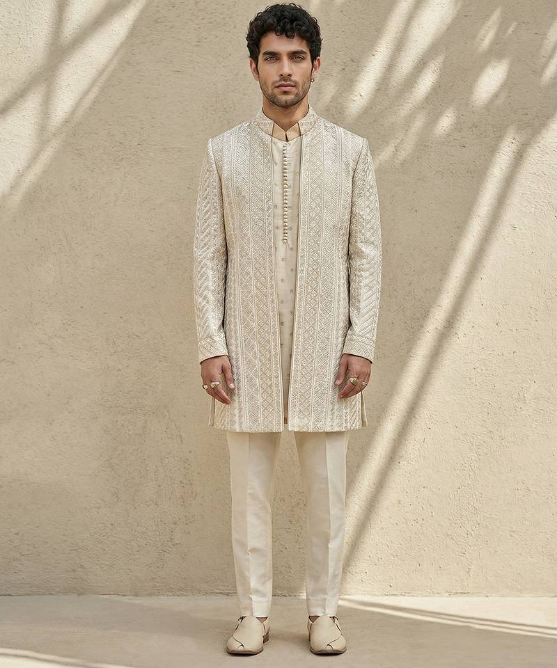 Ivory Embroidered Silk Sherwani