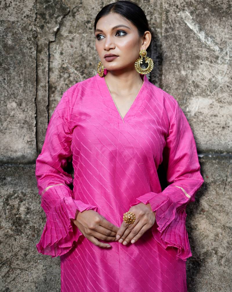 • Product Id : 4704509 • Package Details : 1 Kurti / 1 Pant • Type : Plus Size Kurtis • Occasion : Wedding • Fabric : Cotton Silk • Work : Woven • Type : Zari Woven • Look : Designer • Sleeve : Full Sleeve • Neck Style : Collar Neck Kameez • Color : Pink • Stitching : Stitched • Length : 44.0 • Side Slit : Yes Payments [+]