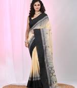 Make a bold style statement with this exquisite beige and black cotton saree, designed to blend comfort with elegance. The saree features a deep beige body complemented by a vibrant black border and pallu, adorned with intricate woven patterns and traditional motifs. Crafted from breathable cotton, it ensures day-long comfort while exuding timeless grace. Perfect for festive occasions, office parties, or cultural gatherings, this saree is a versatile addition to your ethnic collection.