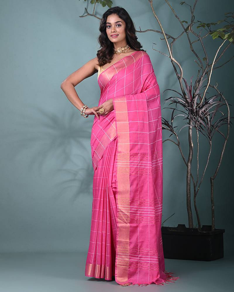 Add a touch of traditional elegance to your wardrobe with this stunning pink art silk saree. Featuring a subtle checkered pattern with a beautiful golden border, this saree is perfect for festive occasions or special events. Crafted from high-quality art silk, it offers a smooth, luxurious feel while ensuring comfort throughout the day. Pair it with statement jewelry for a truly regal look.