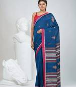 Elevate your ethnic wardrobe with this beautifully crafted sapphire blue cotton saree featuring a striking pink border and vibrant woven motifs. Made from soft, breathable cotton, this saree offers both comfort and elegance, making it perfect for festive occasions, cultural events, or casual gatherings. The intricate multicolor threadwork adds a traditional charm, while the minimalistic design ensures a timeless appeal. Pair it with a contrasting blouse and statement jewelry to complete your sophisticated look.