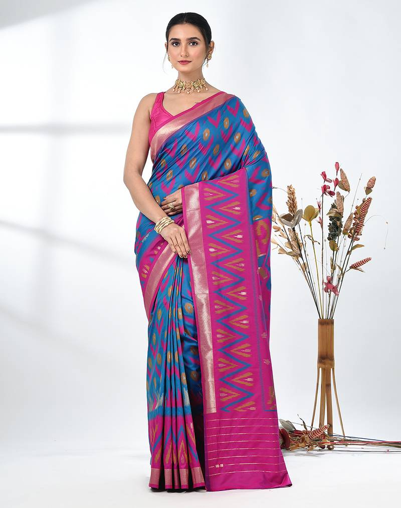 • Saree : Color- Blue / Fabric- Pochampally • Blouse : Color- Pink / Fabric- Pochampally Saree Details