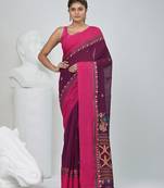 Magenta And Pink Cotton Saree With Traditional Woven Border