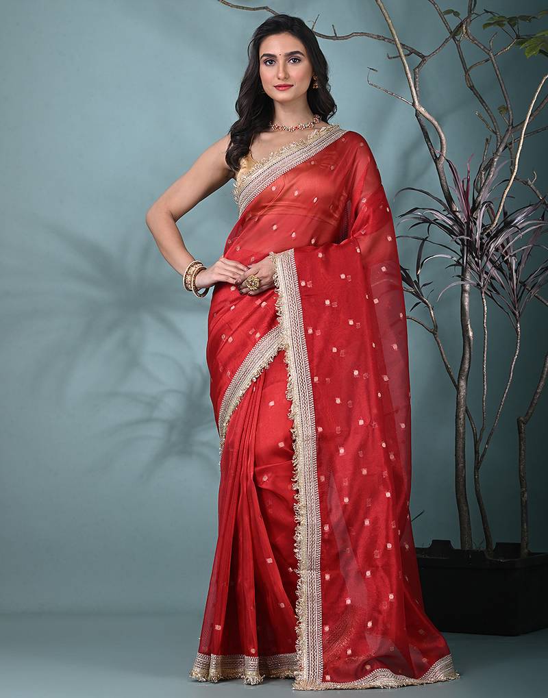 • Color : Red • Fabric Of : Tissue • Work : Woven • Available : Yes • Size : 80 Cm • Fabric : Tissue • Color : Red • Work : Woven • As Per Image : No Petticoat Details