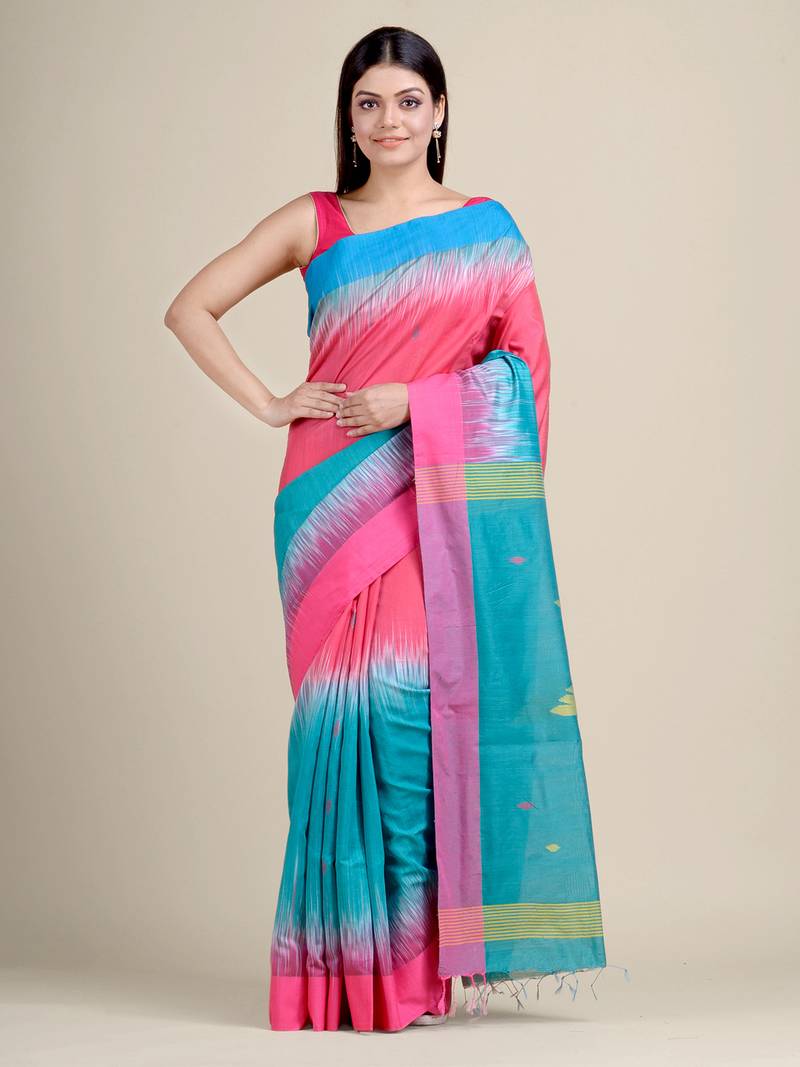 Sky Blue Woven Blended Cotton Saree With Blouse