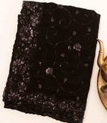 This elegant black saree features delicate lace type floralembroidered border detailing, all over floral embroidered pallu, adding a touch of sophistication and charm. The lightweight fabric drapes beautifully, ensuring comfort and ease of movement. It comes with an unstitched blouse piece, allowing for customization to achieve the perfect fit and style. Ideal for evening events, parties, or special occasions, this saree is a timeless addition to any wardrobe.
