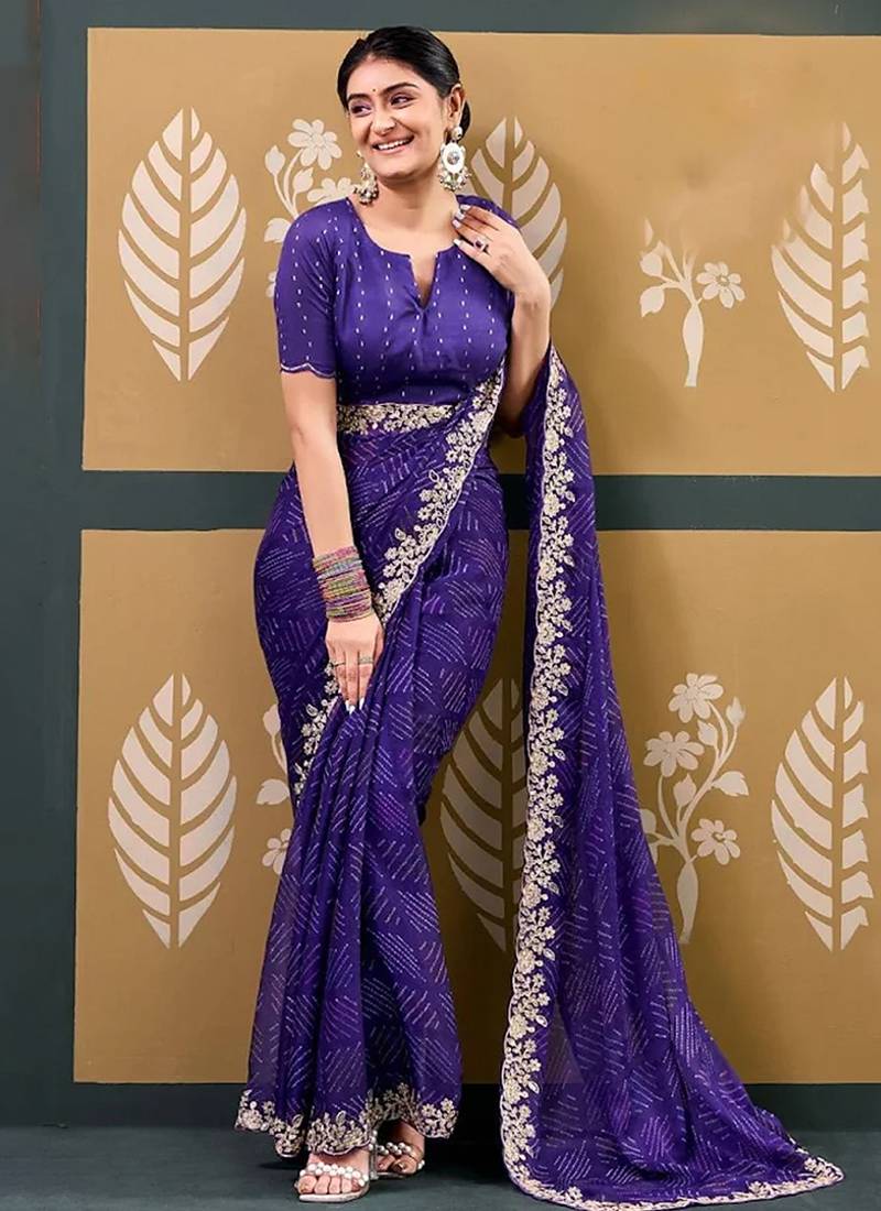 • Product Id : 4743126 • Package Details : 1 Saree / 1 Blouse • Type : Chiffon Sarees • Work : Embroidered • Type : Zari Work • Look : Designer • Pallu Style : Embroidered Pallu • Stitching : Unstitched • Length : 5.5 Metres - 5-8 business days in addition to order delivery time.This service is provided to customers outside India only.