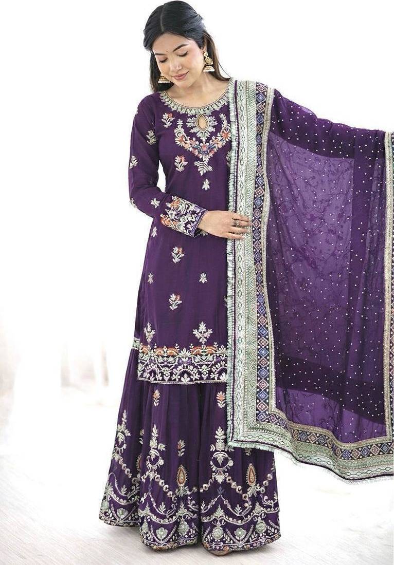 • Style : Sharara • Fabric : Georgette • Color : Purple • Color : Purple Dupatta Details