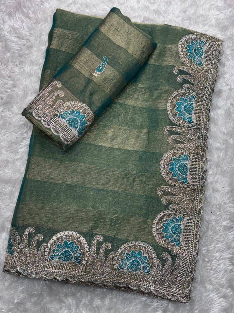 • Border : Embroidered Border • Fabric Of : Chiffon • Color : Green • Color : Green Blouse Details