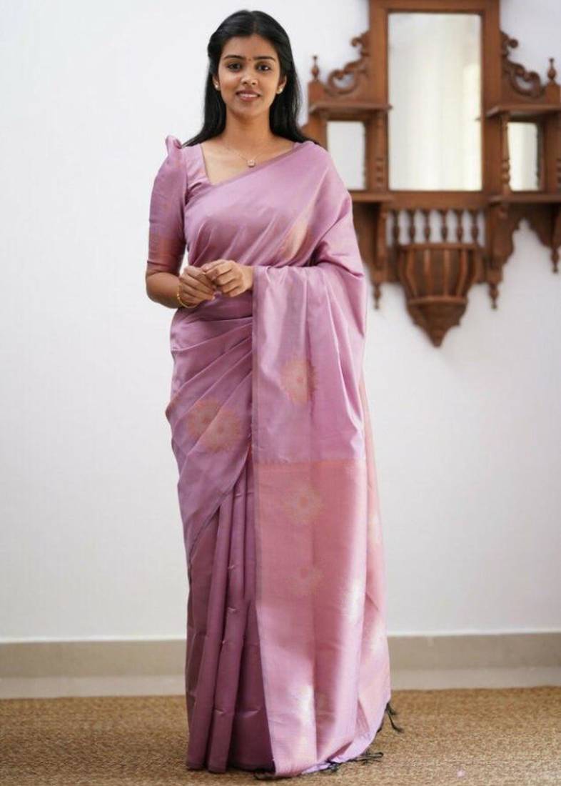 Enhance your ethnic wardrobe with this sophisticated mauve lavender silk blend saree. This elegant piece features a minimalist design with a rich, copper-toned pallu and delicate floral motifs. Its soft drape and understated sheen make it an ideal choice for office parties, daytime ceremonies, and formal family gatherings.