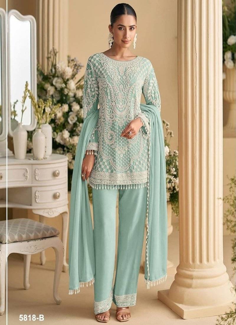 • Product Id : 4714130 • Package Details : 1 Top : 1 Bottom : 1 Dupatta • Type : Readymade Suits For Women • Type : Sequins Work • Look : Traditional • Sleeve : Full Sleeve • Neck Style : Boat Neck • Color : Light Sea Green • Fabric : Faux Georgette • Work : Beads • Stitching : Stitched Payments [+]