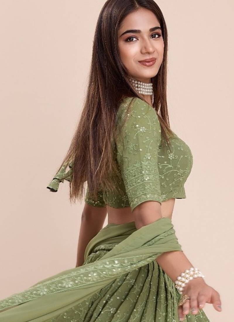 Olive Green Embroidered Lehenga