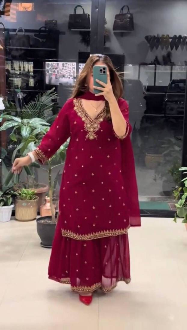 Maroon Georgette Kurta Set