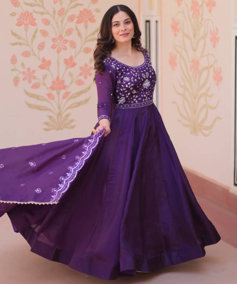 If you find the product for less we'll match it! Know MoreTurn heads at any celebration with this stunning Purple Anarkali suit. Featuring rich embroidery and a graceful flare, it offers a regal appeal. Paired with a matching dupatta, this outfit is perfect for weddings, festive occasions, and traditional events where elegance and style matter.