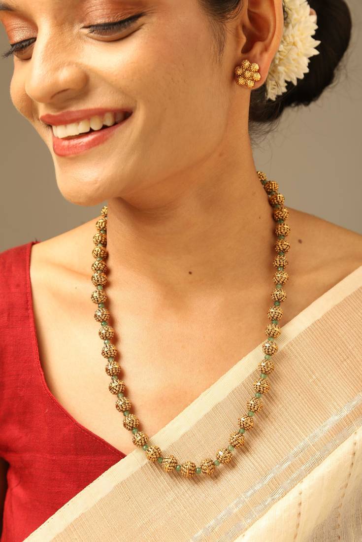 Traditional Gold Bead Long Necklace
