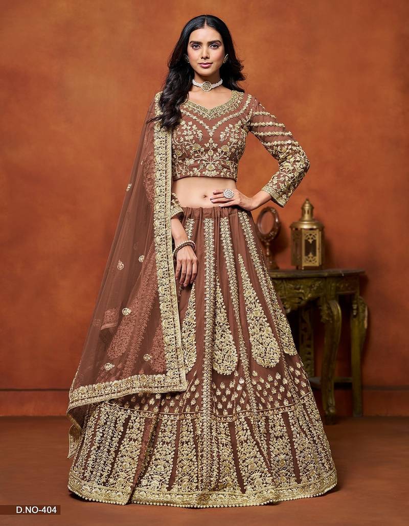Brown Net Embroidered Semi Stitched Lehenga Choli Size Up To 42