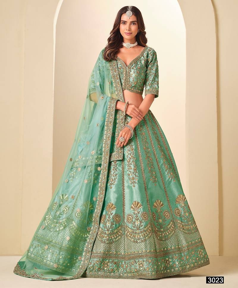 Green Art Silk Embroidered Semi Stitched Lehenga Choli Size Up To 42