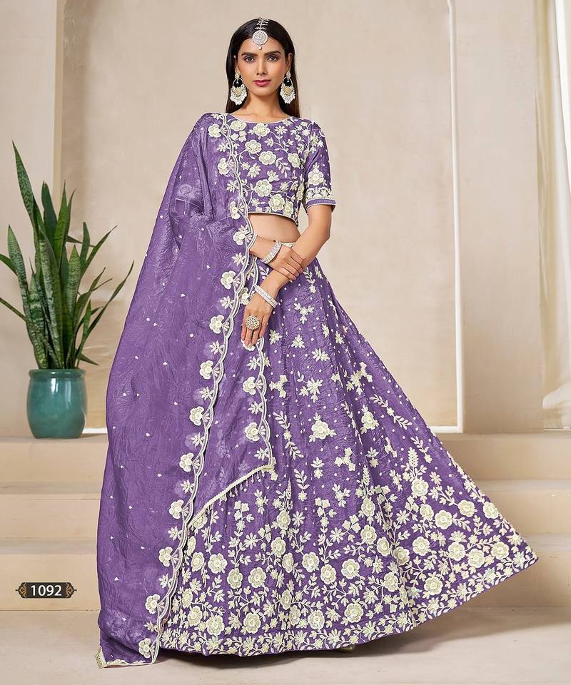 Lavender Organza Embroidered Semi Stitched Lehenga Choli Size Up To 42