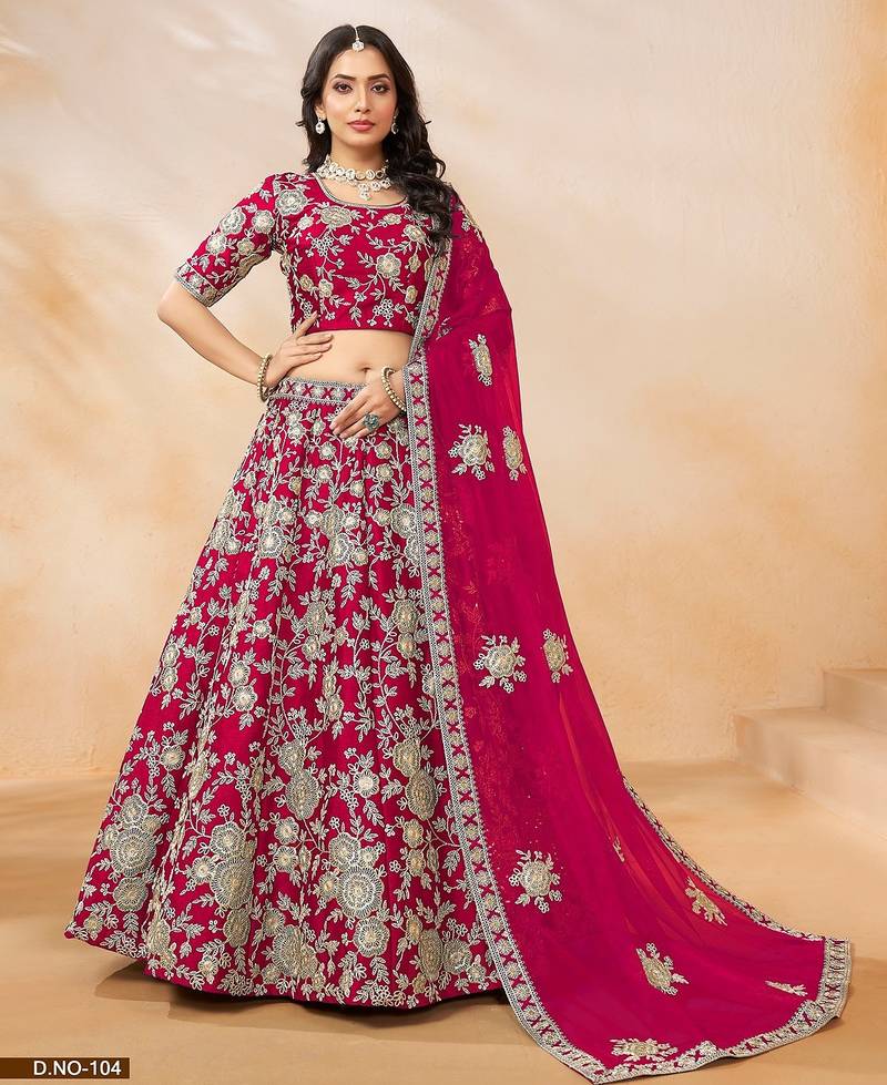 • Product Id : 4714671 • Package Details : 1 Lehenega / 1 Choli / 1 Dupatta • Type : Lehenga Choli Designs • Work : Embroidered • Type : Thread Work • Look : Traditional • Pallu Style : Fancy Pallu • Choli Sleeve : Half Sleeve Choli • Choli Neck Style : Round Neck Choli • Stitching : Semi Stitched • Length : 42.0 • Model Size : M Stitching [+]