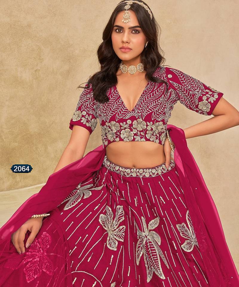 • Product Id : 4714722 • Package Details : 1 Lehenega / 1 Choli / 1 Dupatta • Type : Lehenga Choli Designs • Work : Embroidered • Type : Thread Work • Look : Traditional • Pallu Style : Fancy Pallu • Choli Sleeve : Half Sleeve Choli • Choli Neck Style : V Neck Choli • Stitching : Semi Stitched • Length : 42.0 • Model Size : M Stitching [+]