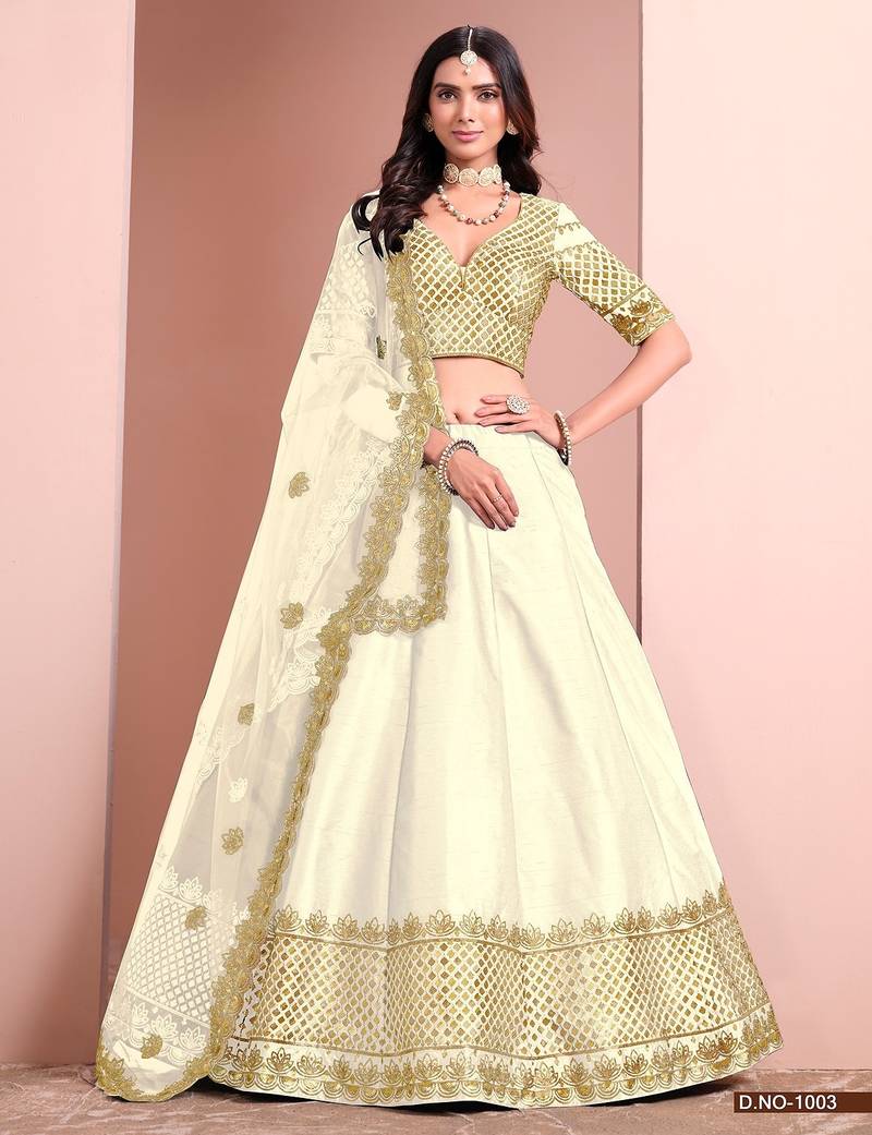 White Art Silk Embroidered Semi Stitched Lehenga Choli Size Up To 42