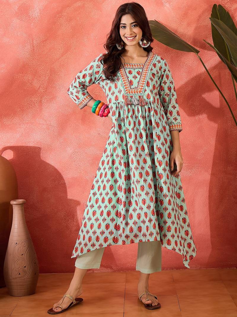 Women Ethnic Motifs Printed Cotton Kurta With Trousers
