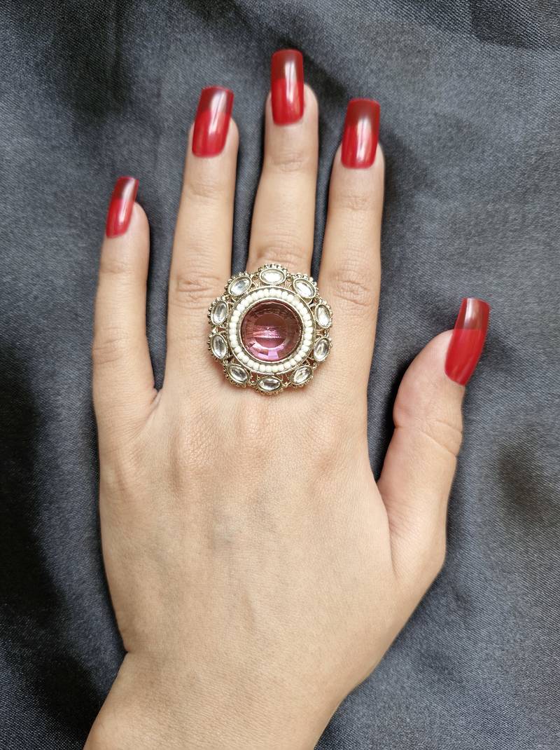 • Product Id : 4704785 • Package Details : 1 Finger Ring • Type : Rings • Occasion : Ceremonial • Jewellery Work : Studded Jewellery • Color : Pink • Plating : Sterling Silver • Base Material : Copper Payments [+]