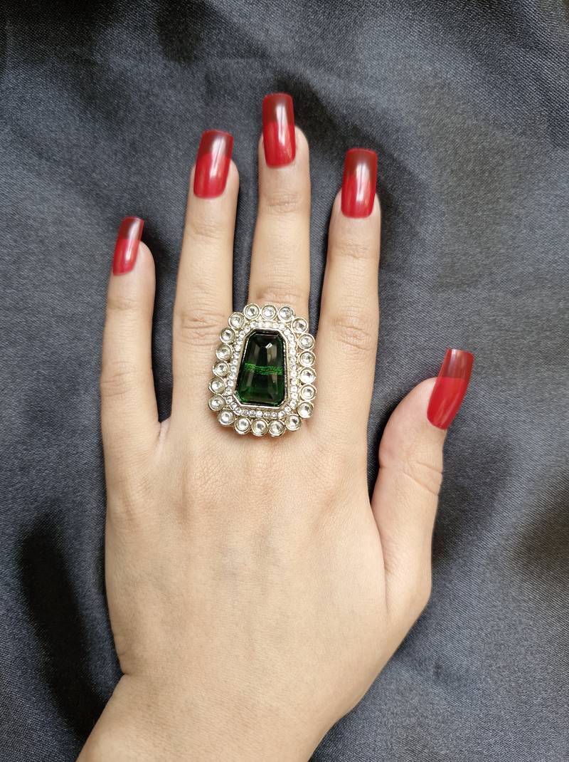 • Product Id : 4704786 • Package Details : 1 Finger Ring • Type : Rings • Jewellery Work : Studded Jewellery • Color : Green • Plating : Sterling Silver • Base Material : Copper Payments [+]