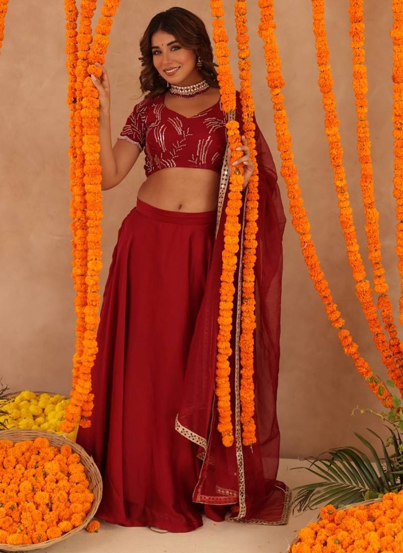 • Dupatta : Color- Red / Fabric- Organza Lehenga Details