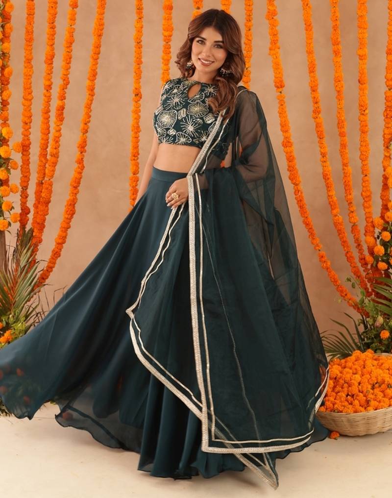 • Dupatta : Color- Green / Fabric- Organza Lehenga Details