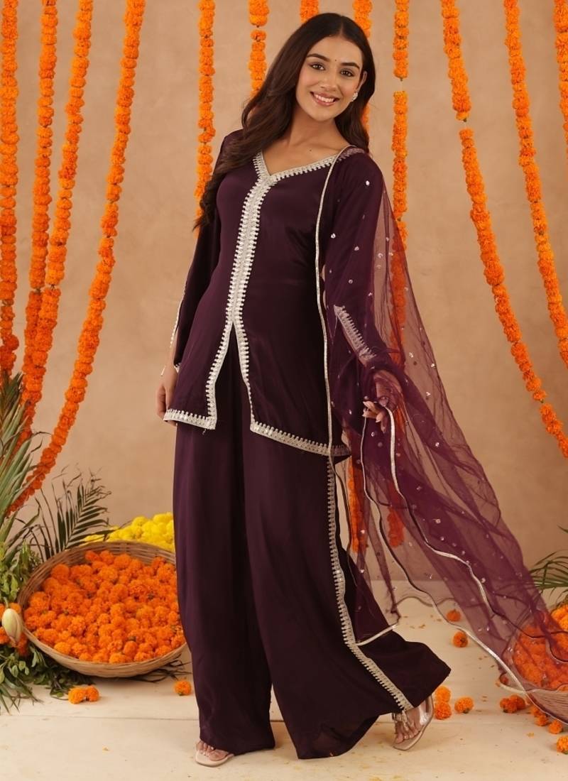 • Product Id : 4713371 • Package Details : 1 Top/ 1 Bottom/ 1 Dupatta • Type : Readymade Suits For Women • Work : Printed • Sleeve : Full Sleeve • Fabric : Silk • Color : Wine • Stitching : Stitched Payments [+]