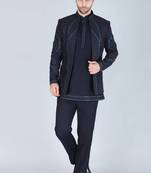 Navy Blue Thread And Sequins Embroidered Short Indowestern