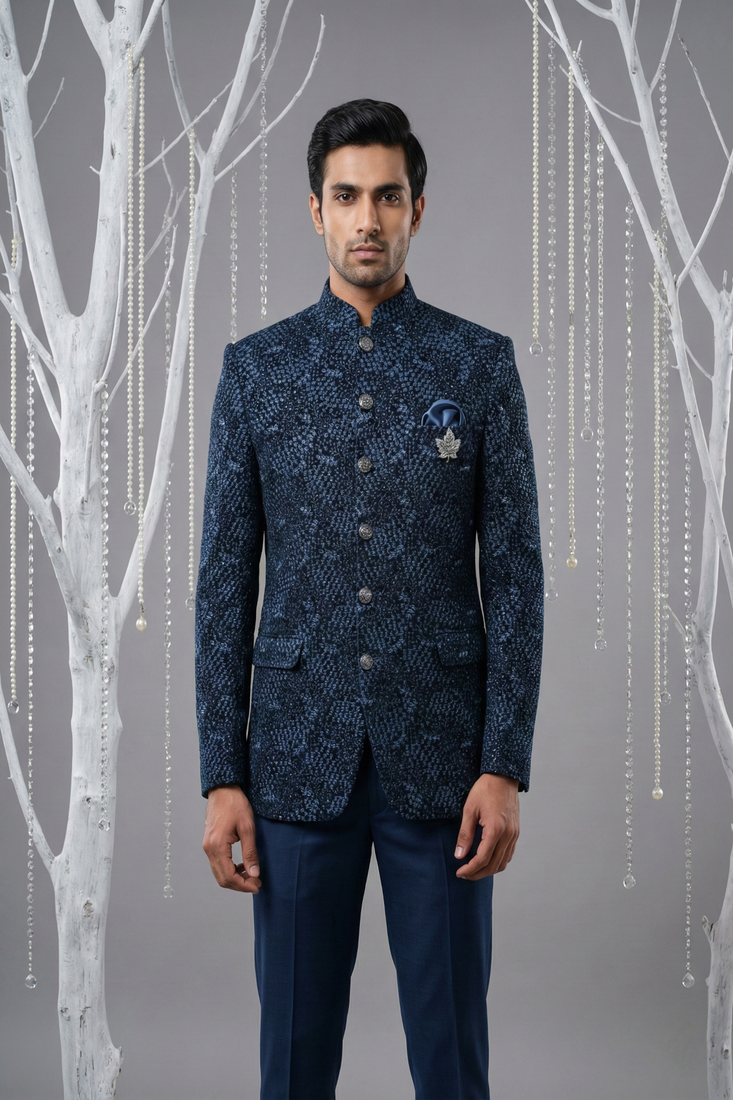 • Product Id : 4707256 • Package Details : 1 Coat : 1 Trouser • Type : Bandhgala Suit • Fabric : Velvet • Work : Embroidered • Type : Resham Embroidery • Look : Fashion • Bottom Style : Trouser • Sleeve : Full Sleeve • Color : Blue • Bottom Color : Blue • Top Color : Blue • Top Fabric : Velvet • Stitching : Stitched Payments [+]