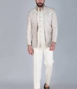 Off White Thread And Sequins Embroidered Short Indowestern On Silk