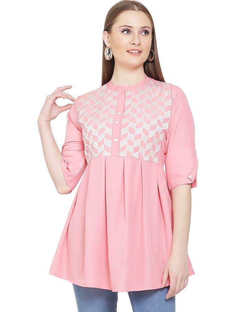 Avyanna Stylish Women's Peach Embroidered Crepe Tunic