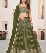• Fabric : Georgette • Work : Embroidered • Color : Olive • Length : 2.5 Lehenga Details