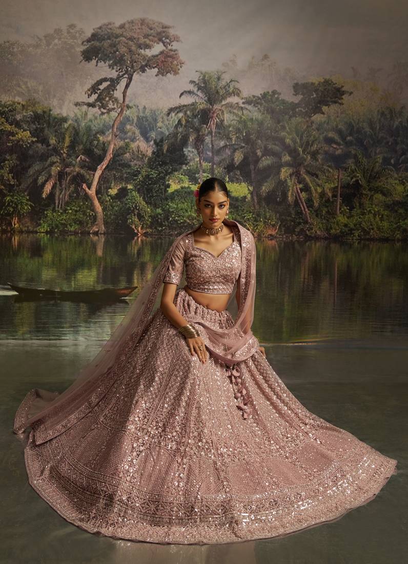 • Fabric : Net • Work : Embroidered • Color : Mauve • Length : 2.2 Lehenga Details