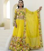 • Fabric : Organza • Work : Embroidered • Color : Yellow • Length : 2.5 Lehenga Details