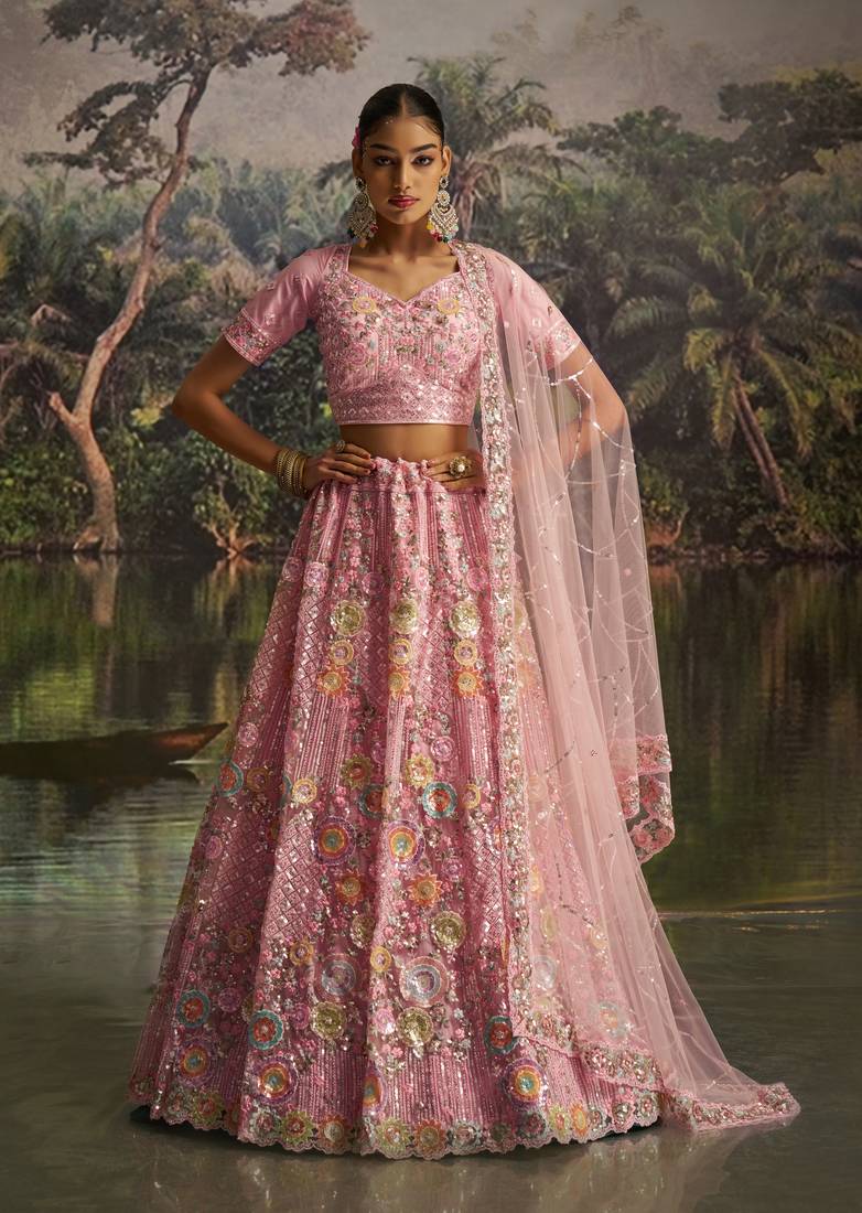 Pink Net Embroidered Lehenga Choli With Dupatta