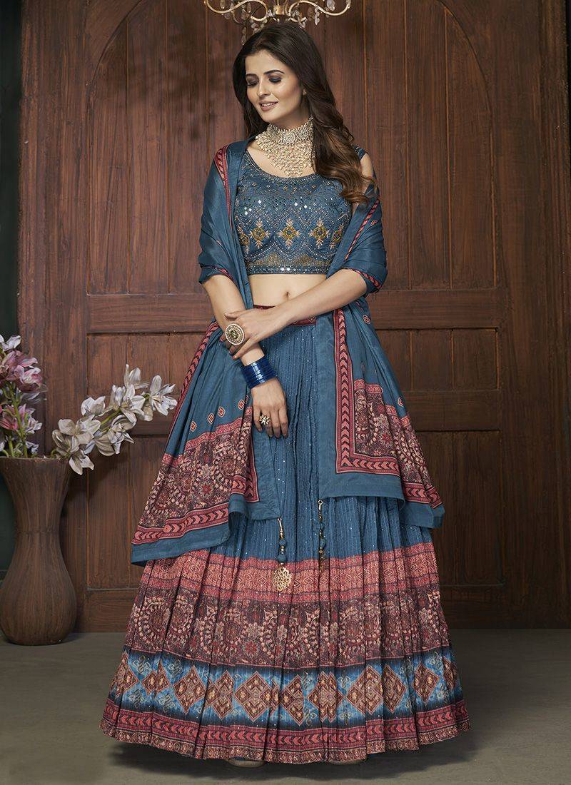 • Dupatta : Color- Blue / Fabric- Silk Lehenga Details