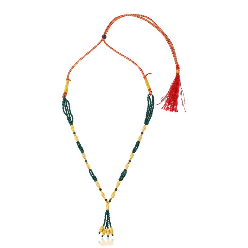 Elevate your festive and bridal look with this exquisite multi-strand emerald beads necklace, crafted to blend traditional artistry with modern elegance. Featuring natural green emerald beads paired with long, oval-shaped brass gold-plated hand-carved beads, this necklace radiates richness and sophistication. Its adjustable size design ensures comfort and versatility, making it suitable for women of all ages. Perfect for weddings, bridal parties, festive occasions, or even as a statement piece for cultural celebrations, this necklace embodies timeless beauty and craftsmanship. The vibrant emerald green combined with golden accents creates a luxurious aura that complements both ethnic and contemporary outfits.