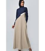 Women's Contrast Colorblocked Sand Jersey Abaya Dress For Travel Navy And Sand