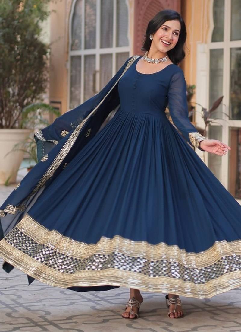 • Product Id : 4677841 • Package Details : 1 Top/1 Bottom • Type : Anarkali Suit • Occasion : Wedding • Work : Embroidered • Type : Zari Work • Look : Designer • Sleeve : Full Sleeve • Neck Style : Round Neck • Celebrity : Shilpa Shetty • Fabric : Georgette • Color : Blue • Stitching : Stitched • Min Bustsize Fit : 38 • Max Bustsize Fit : 44 Payments [+]