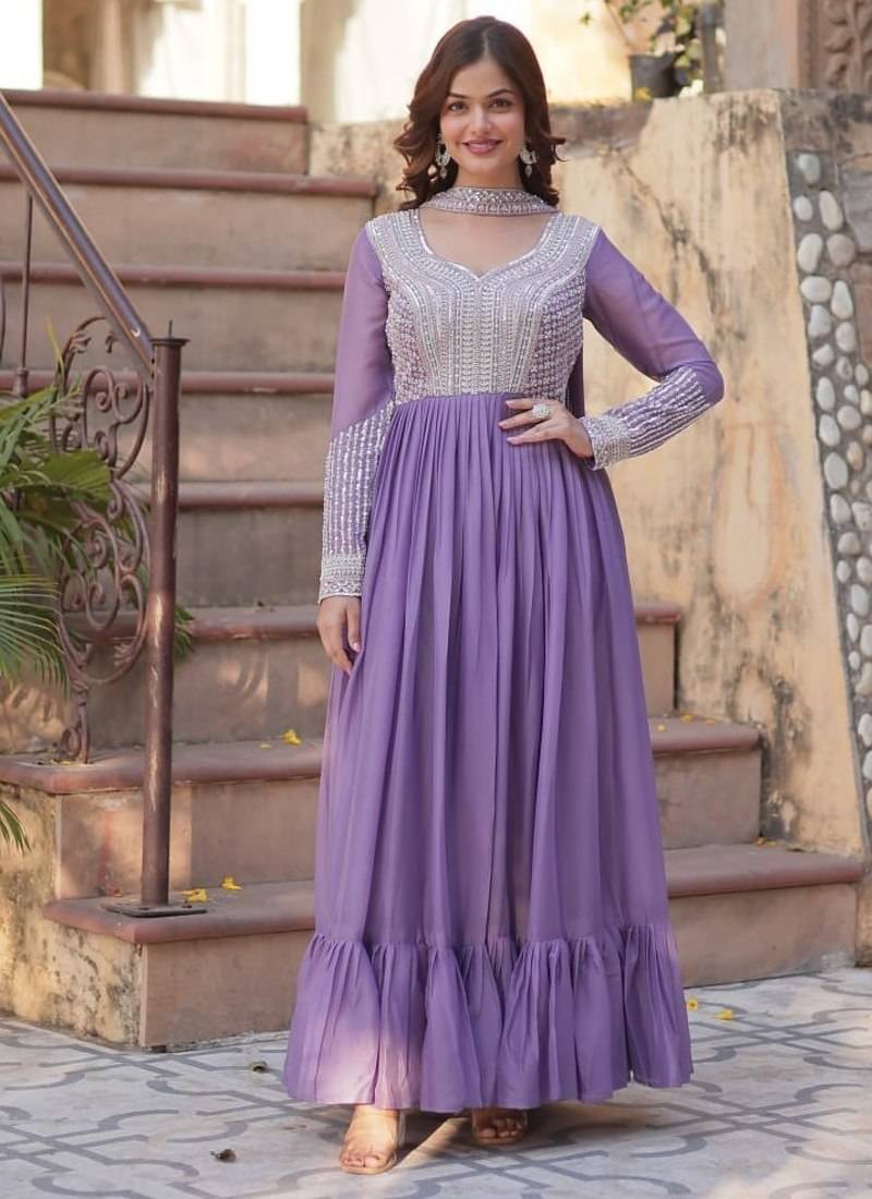 Lavender Sequin Embroidered Georgette Anarkali Set Stitched