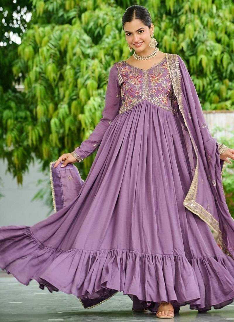 Lavender Vichitra Silk Embroidered Sequins Anarkali Suit Festive Wear Stitched