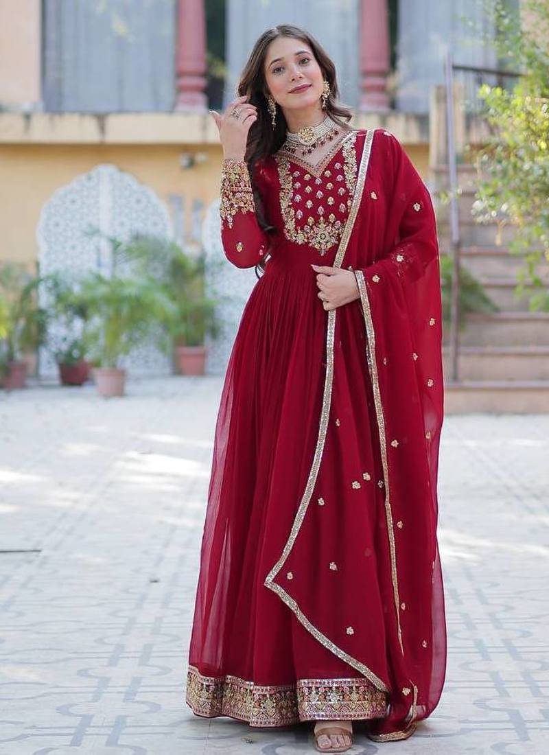 • Product Id : 4677714 • Package Details : 1 Top/1 Dupatta • Type : Anarkali Suit • Occasion : Wedding • Work : Embroidered • Type : Sequins Work • Look : Designer • Sleeve : Full Sleeve • Neck Style : V Neck • Celebrity : Deepika Padukone • Color : Maroon • Fabric : Faux Georgette • Stitching : Stitched • Min Bustsize Fit : 38 • Max Bustsize Fit : 44 Payments [+]