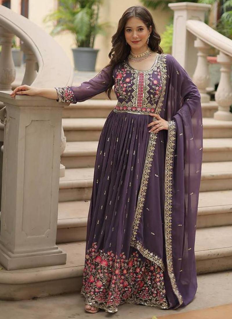 Purple Faux Georgette Embroidered Sequins Anarkali Suit Festive Wear Stitched
