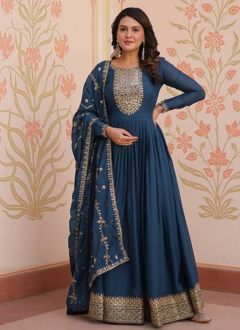Rama Blue Star Georgette Zari Sequins Embroidered Gown With Dupatta Stitched
