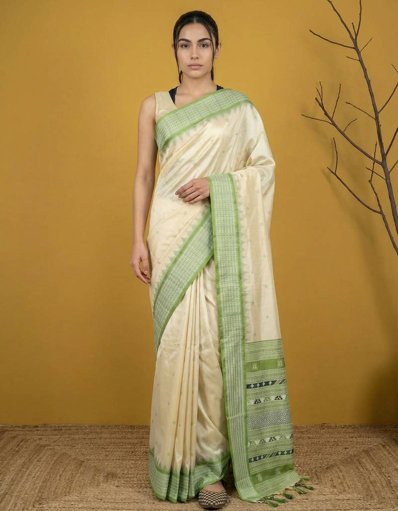 Handloom Soft Art Silk Saree With Zari Woven Motifs Contrast Traditional Border