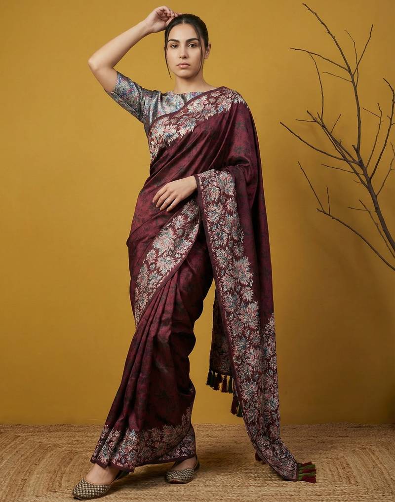 • Saree : Color- Maroon / Fabric- Silk Blend • Blouse : Color- Multicolor / Fabric- Silk Blend Saree Details